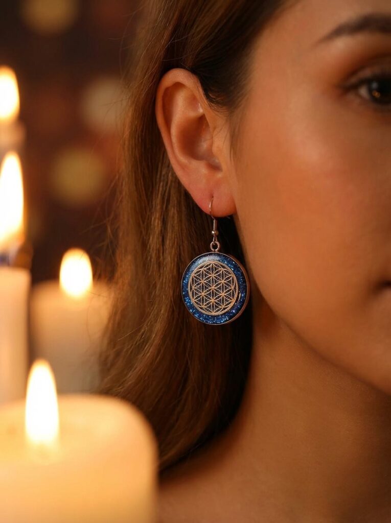 Boucles d’Oreilles Fleur de Vie Bleues « Ciel d’Énergie »