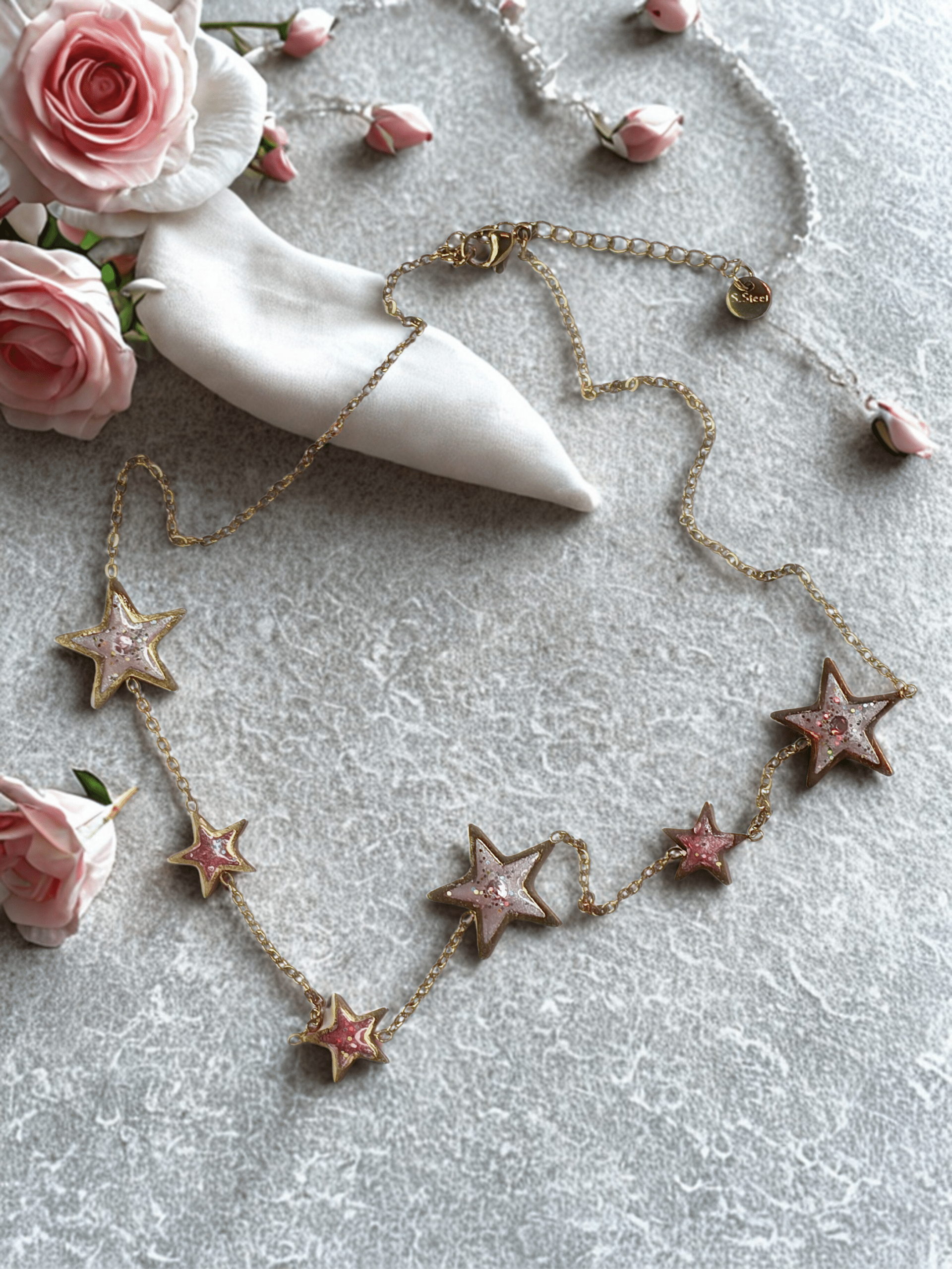 Collier Univers Étoilé rose pailleté « Aura Céleste »